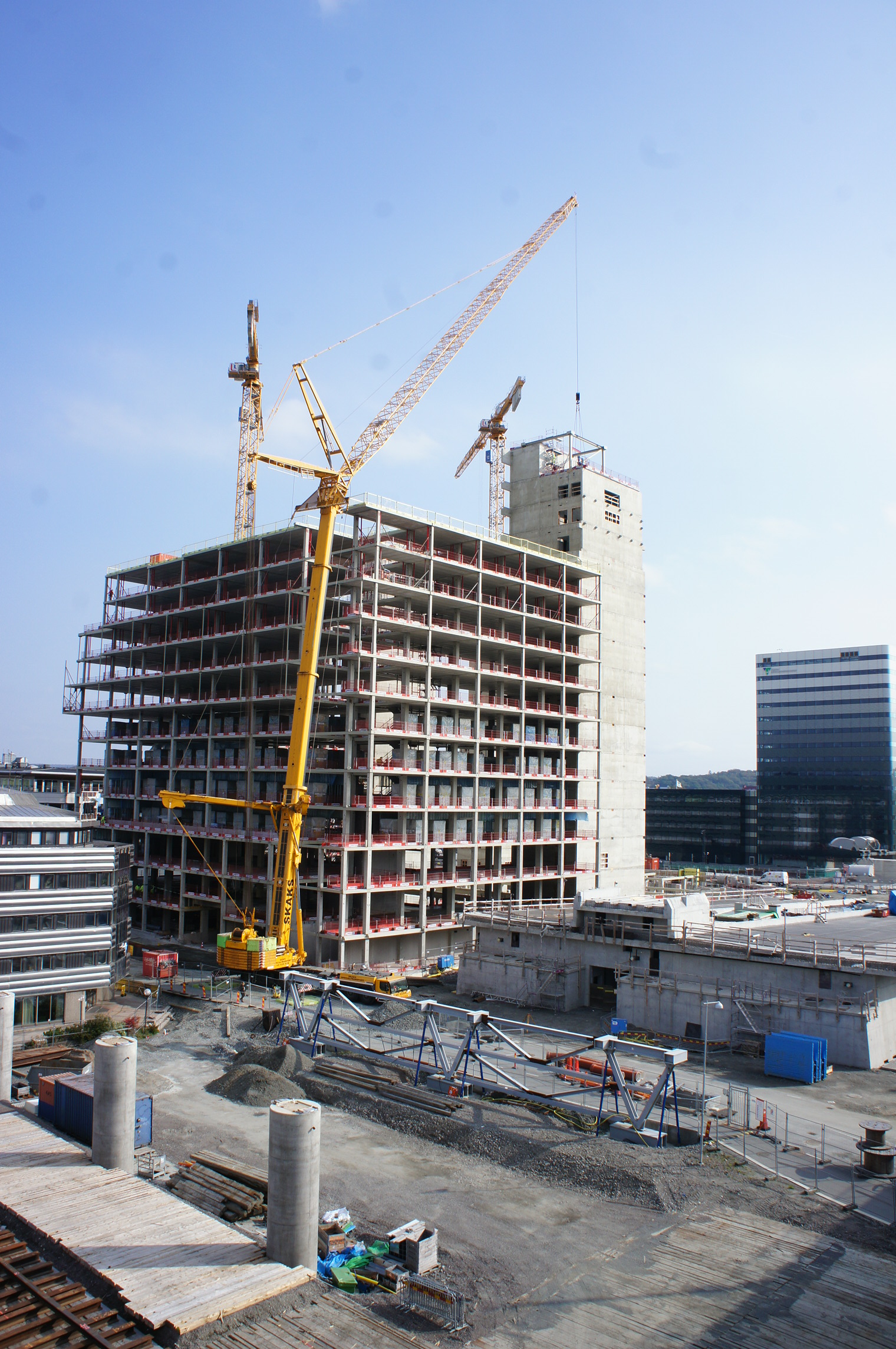Under byggnation utförs arbetsplatsbesök beronde på projektets omfattning av kontrollansvarige, konstruktör, brandkonsult, bygginspektör och byggnadsantikvarie.
